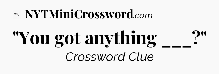 The clue “”You got anything ___?”” most recently appeared in a WSJ Crossword on November 5, 2024.