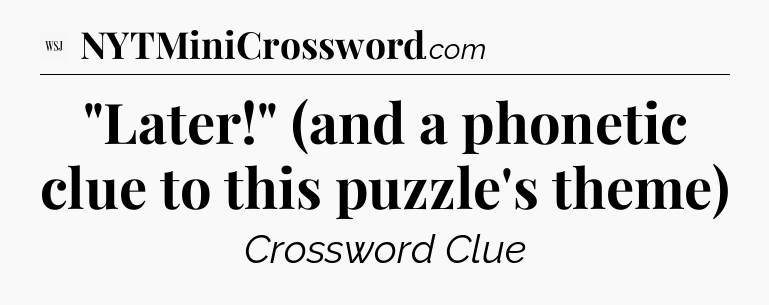 The clue “”Later!” (and a phonetic clue to this puzzle’s theme)” most recently appeared in a WSJ Crossword on November 6, 2023.