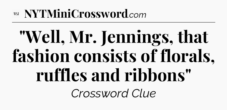 The clue “”Well, Mr. Jennings, that fashion consists of florals, ruffles and ribbons”” most recently appeared in a WSJ Crossword on December 13, 2025.