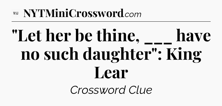 The Answer for “Let her be thine, ___ have no such daughter”: King Lear – WSJ Crossword Clue Solution is: