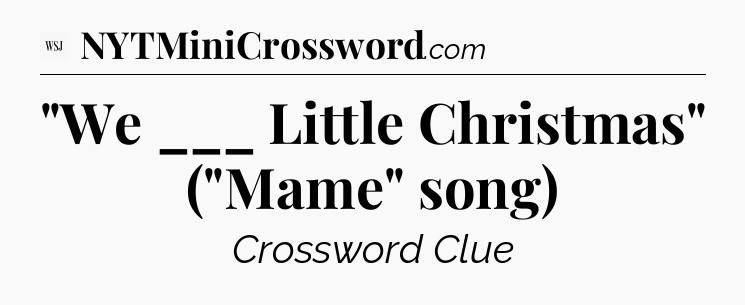 The clue “”We ___ Little Christmas” (“Mame” song)” most recently appeared in a WSJ Crossword on December 16, 2023.