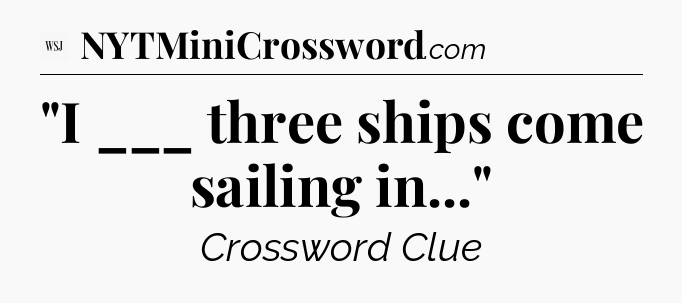 The clue “”I ___ three ships come sailing in…”” most recently appeared in a WSJ Crossword on December 19, 2023.