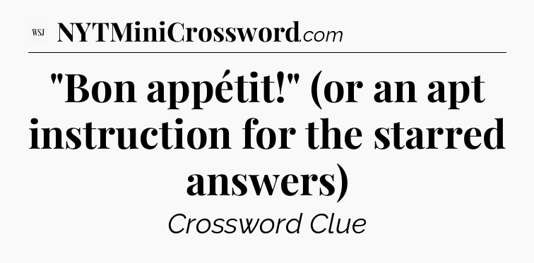 The clue “”Bon appétit!” (or an apt instruction for the starred answers)” most recently appeared in a WSJ Crossword on December 23, 2025.