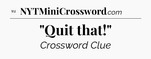 The clue “”Quit that!”” most recently appeared in a WSJ Crossword on December 4, 2023.