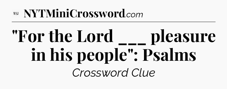 The clue “”For the Lord ___ pleasure in his people”: Psalms” most recently appeared in a WSJ Crossword on February 15, 2024.