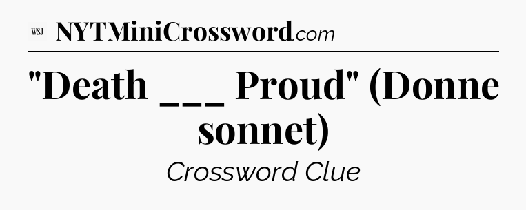 The clue “”Death ___ Proud” (Donne sonnet)” most recently appeared in a WSJ Crossword on February 18, 2025.
