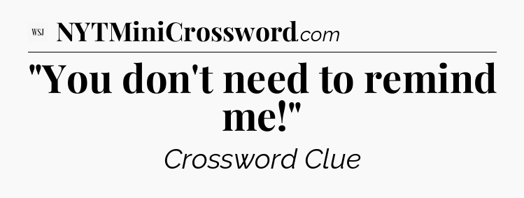 The clue “”You don’t need to remind me!”” most recently appeared in a WSJ Crossword on February 22, 2024.