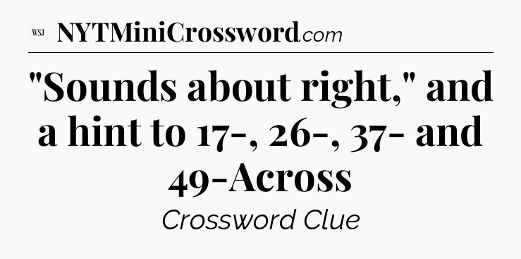 The clue “”Sounds about right,” and a hint to 17-, 26-, 37- and 49-Across” most recently appeared in a WSJ Crossword on February 23, 2026.