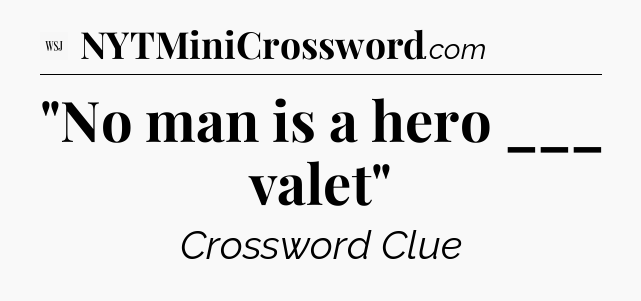 The clue “”No man is a hero ___ valet”” most recently appeared in a WSJ Crossword on February 24, 2024.