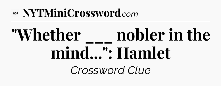 The clue “”Whether ___ nobler in the mind…”: Hamlet” most recently appeared in a WSJ Crossword on February 24, 2026.