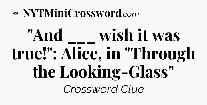The clue “”And ___ wish it was true!”: Alice, in “Through the Looking-Glass”” most recently appeared in a WSJ Crossword on February 26, 2026.