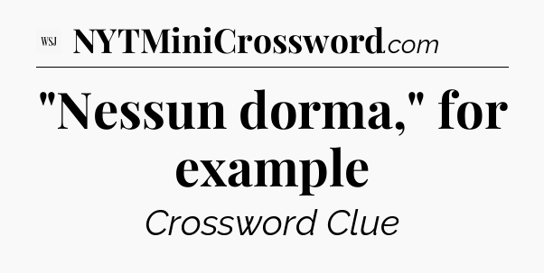 The clue “”Nessun dorma,” for example” most recently appeared in a WSJ Crossword on February 27, 2024.