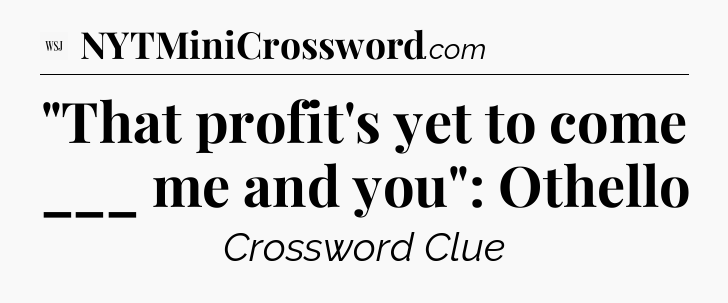 The clue “”That profit’s yet to come ___ me and you”: Othello” most recently appeared in a WSJ Crossword on February 3, 2024.