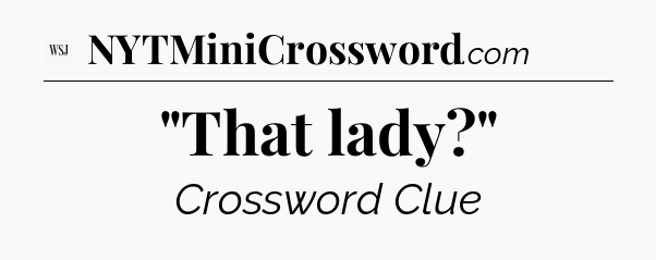 The clue “”That lady?”” most recently appeared in a WSJ Crossword on February 9, 2024.
