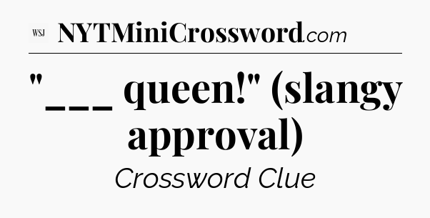The clue “”___ queen!” (slangy approval)” most recently appeared in a WSJ Crossword on March 22, 2025.