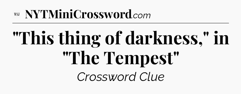 The clue “”This thing of darkness,” in “The Tempest”” most recently appeared in a WSJ Crossword on March 23, 2024.
