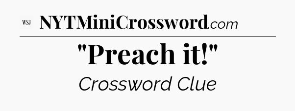 The clue “”Preach it!”” most recently appeared in a WSJ Crossword on March 26, 2024.
