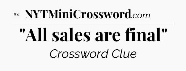 The clue “”All sales are final”” most recently appeared in a WSJ Crossword on March 27, 2023.