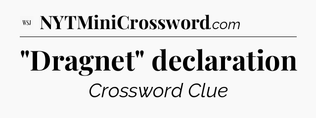 The clue “”Dragnet” declaration” most recently appeared in a WSJ Crossword on March 8, 2023.