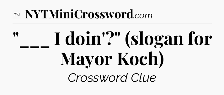 The clue “”___ I doin’?” (slogan for Mayor Koch)” most recently appeared in a WSJ Crossword on April 11, 2024.