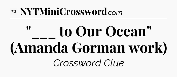 The clue “”___ to Our Ocean” (Amanda Gorman work)” most recently appeared in a WSJ Crossword on April 17, 2023.