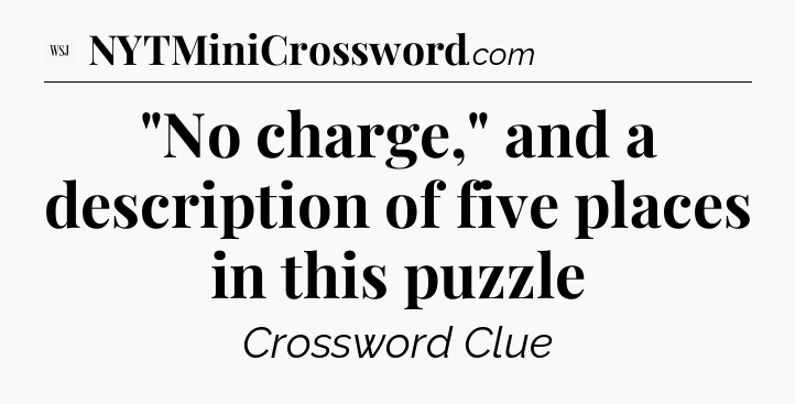 The clue “”No charge,” and a description of five places in this puzzle” most recently appeared in a WSJ Crossword on April 27, 2023.