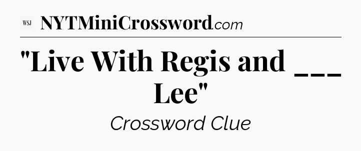 The clue “”Live With Regis and ___ Lee”” most recently appeared in a WSJ Crossword on April 27, 2024.