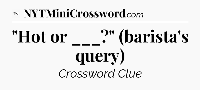 The clue “”Hot or ___?” (barista’s query)” most recently appeared in a WSJ Crossword on April 5, 2024.