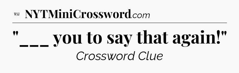 The clue “”___ you to say that again!”” most recently appeared in a WSJ Crossword on April 7, 2023.