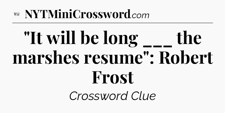 Looking for the answer to “It will be long ___ the marshes resume”: Robert Frost from WSJ Crossword published on May 11 2023? We have the business-focused solution ready below.