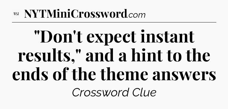 The clue “”Don’t expect instant results,” and a hint to the ends of the theme answers” most recently appeared in a WSJ Crossword on May 14, 2024.