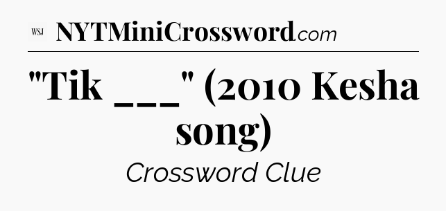 The clue “”Tik ___” (2010 Kesha song)” most recently appeared in a WSJ Crossword on May 21, 2025.