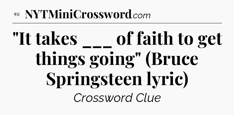“”It takes ___ of faith to get things going” (Bruce Springsteen lyric)” WSJ Crossword Clue: Frequently Asked Questions