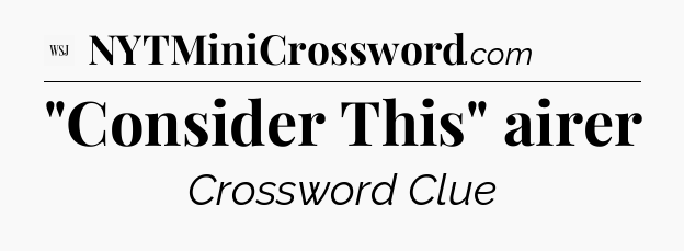 The clue “”Consider This” airer” most recently appeared in a WSJ Crossword on May 31, 2024.