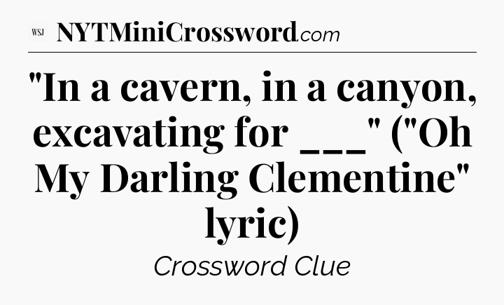 The clue “”In a cavern, in a canyon, excavating for ___” (“Oh My Darling Clementine” lyric)” most recently appeared in a WSJ Crossword on June 10, 2025.