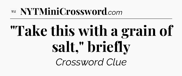 The clue “”Take this with a grain of salt,” briefly” most recently appeared in a WSJ Crossword on June 14, 2024.