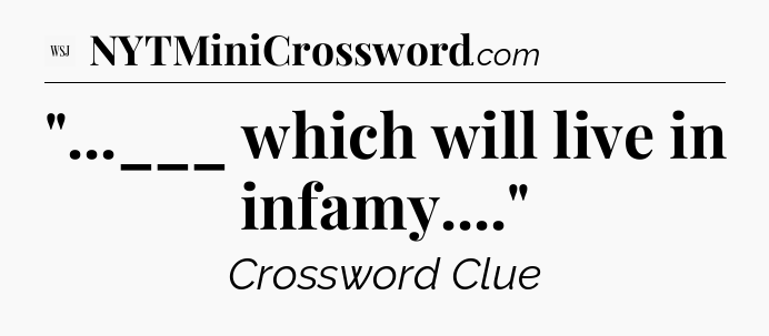 The Answer for “…___ which will live in infamy….” – WSJ Crossword Clue Solution is: