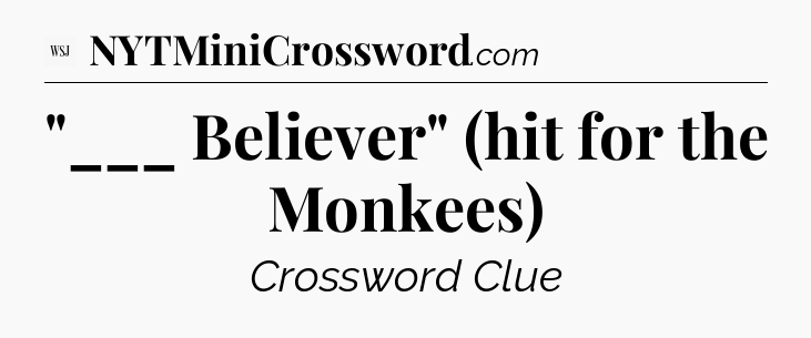 The clue “”___ Believer” (hit for the Monkees)” most recently appeared in a WSJ Crossword on June 23, 2025.