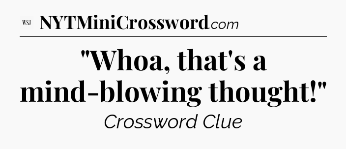 The clue “”Whoa, that’s a mind-blowing thought!”” most recently appeared in a WSJ Crossword on June 29, 2023.