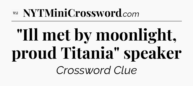 The clue “”Ill met by moonlight, proud Titania” speaker” most recently appeared in a WSJ Crossword on June 9, 2023.