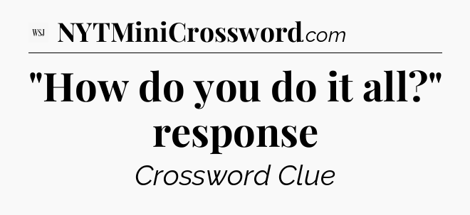 The clue “”How do you do it all?” response” most recently appeared in a WSJ Crossword on July 10, 2024.