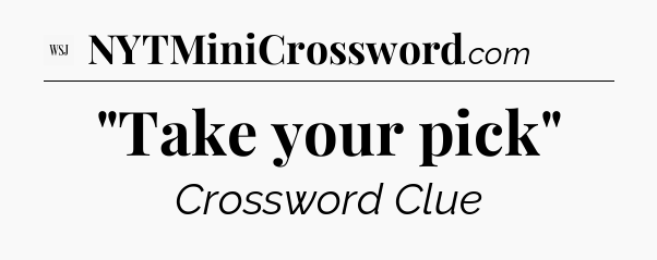 The clue “”Take your pick”” most recently appeared in a WSJ Crossword on July 19, 2025.