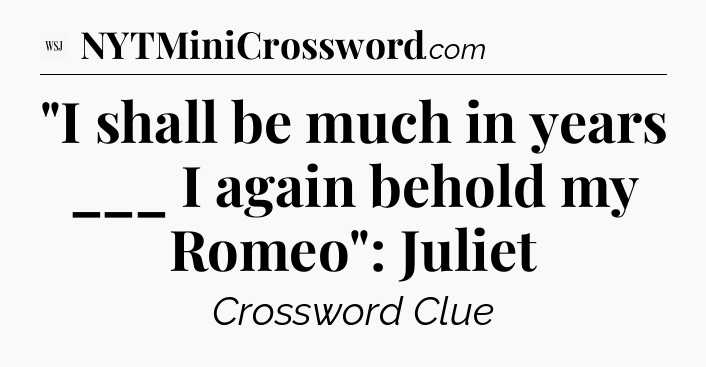 The clue “”I shall be much in years ___ I again behold my Romeo”: Juliet” most recently appeared in a WSJ Crossword on July 27, 2024.