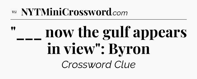 The clue “”___ now the gulf appears in view”: Byron” most recently appeared in a WSJ Crossword on August 22, 2024.