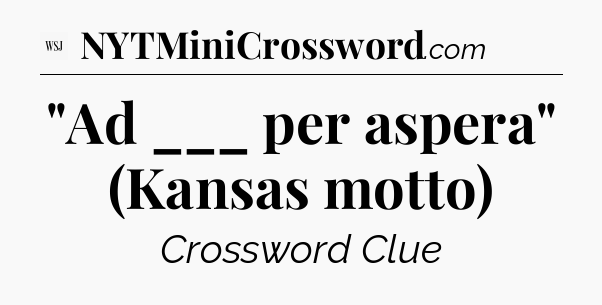 The clue “”Ad ___ per aspera” (Kansas motto)” most recently appeared in a WSJ Crossword on August 30, 2025.