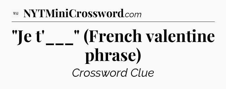 The clue “”Je t’___” (French valentine phrase)” most recently appeared in a WSJ Crossword on August 9, 2025.
