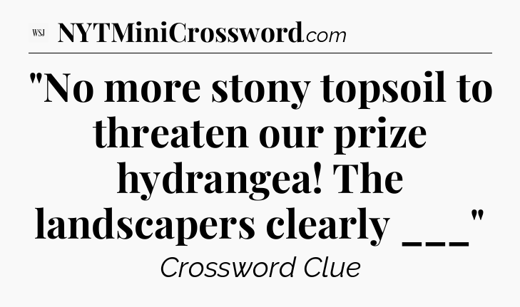 Looking for the answer to “No more stony topsoil to threaten our prize hydrangea! The landscapers clearly ___” from WSJ Crossword published on September 13 2025? We have the business-focused solution ready below.