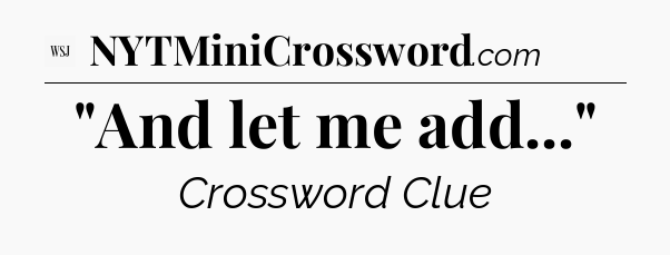The clue “”And let me add…”” most recently appeared in a WSJ Crossword on September 19, 2025.