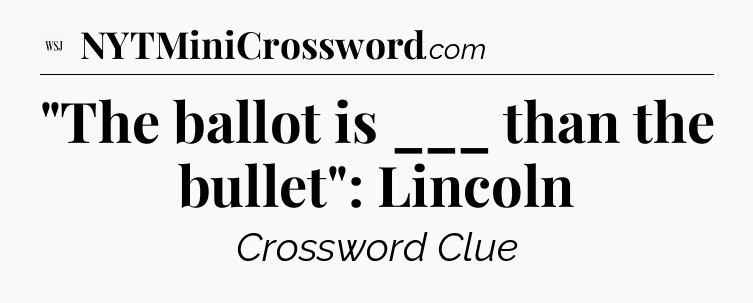 The clue “”The ballot is ___ than the bullet”: Lincoln ” most recently appeared in a WSJ Crossword on September 19, 2025.