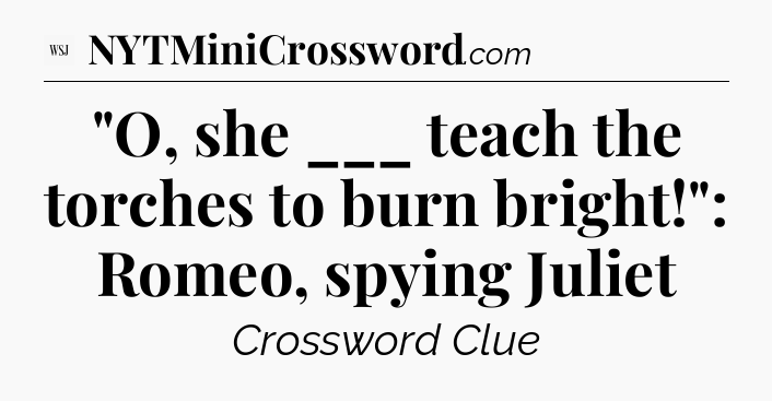 The clue “”O, she ___ teach the torches to burn bright!”: Romeo, spying Juliet” most recently appeared in a WSJ Crossword on September 20, 2025.